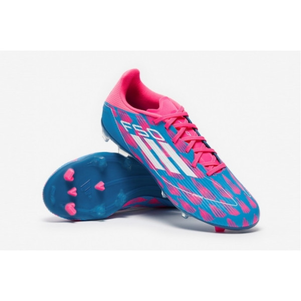 Переосмыслите скорость в новых футбольных бутсах adidas F50 League FG/MG IE0603 в цветах Solar Blue/Ftwr White/Solar Pink.