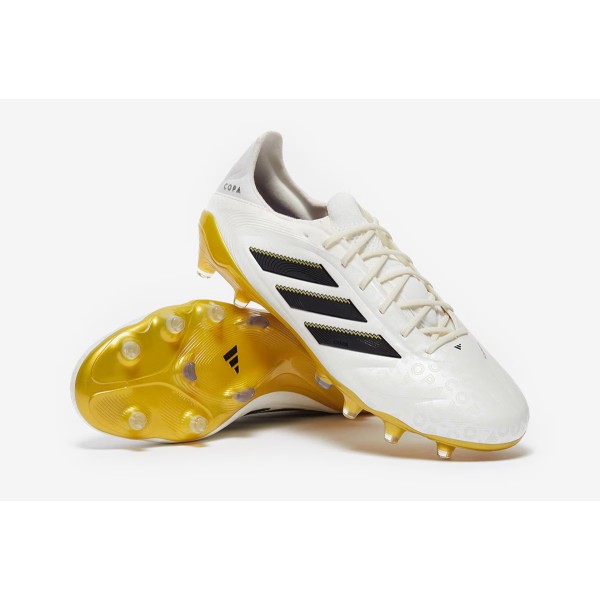 Створюйте переможні моменти матчу з Adidas Copa Pure 3 Elite FG JH6303 кольору White/Core Black/Met Gold – бутсами для гравців на полі. Ви не просто граєте в гру, ви її відчуваєте.