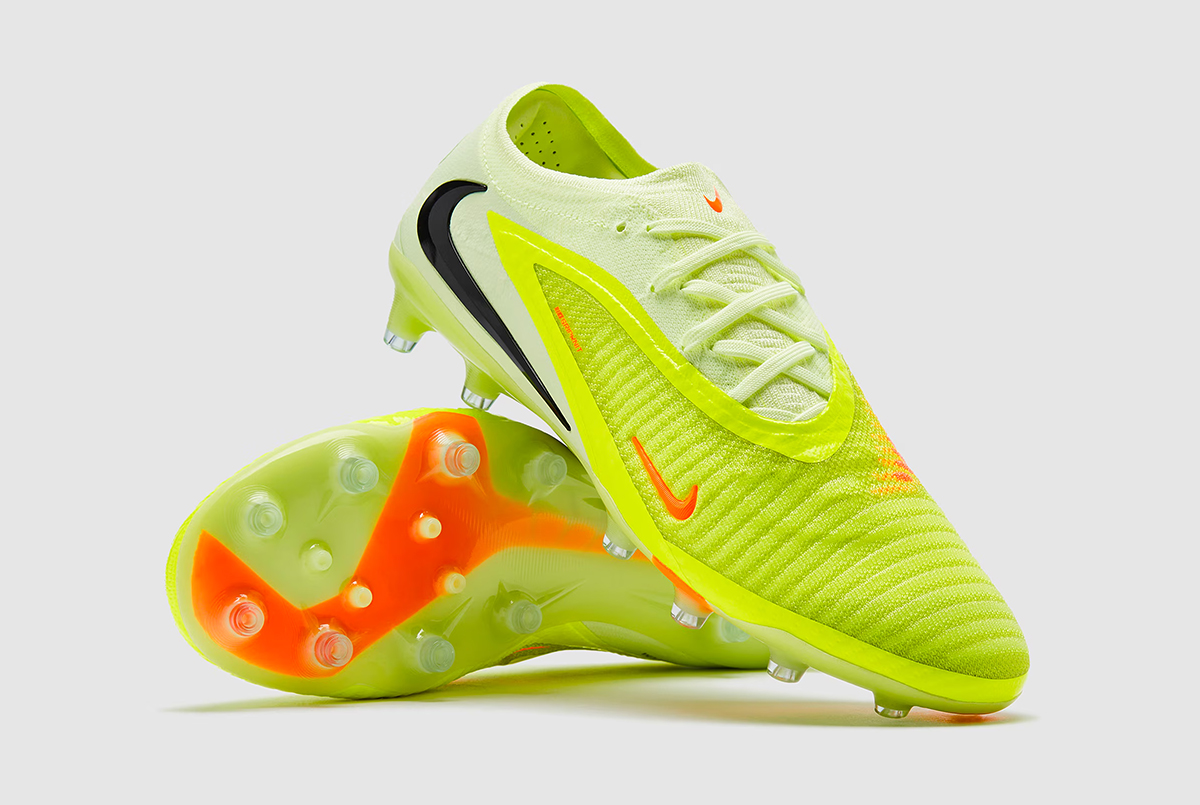 Для подготовки к этим разрушительным ударам подошва AG-Pro повышает агрессивность для интуитивной маневренности. Узнаваемые шипы, ориентированные на вращение, позволяют вам менять направление и мощность плавным движением, уменьшая нагрузку на ваше тело, когда вы оставляете защитников врасплох. Наконец, посадка. Phantom 6 тоже шагнул вперёд, представив новую форму, которая лучше подходит для разных типов стоп, особенно в области пальцев. Прорываться сквозь оборону ещё никогда не было так приятно.