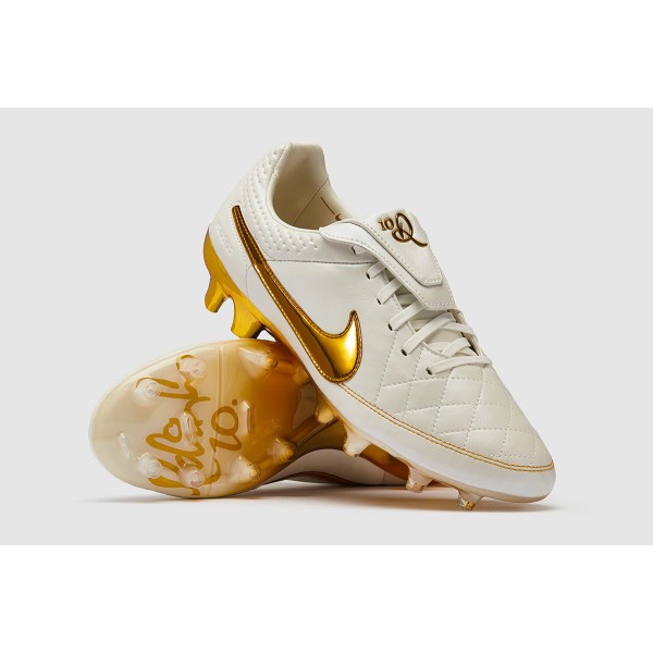 Подтвердите свой талант плеймейкера с футбольными бутсами Nike Tiempo Legend Regen SE FG IF4388-100 в расцветке Metallic Summit White/Metallic Gold Coin — это версия Touch of Gold Tiempo 2025 года.