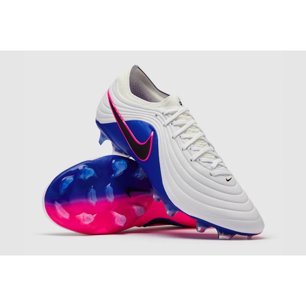 Играйте с изяществом и мастерством в футбольных бутсах Nike Tiempo Maestro Elite FG HQ3157-146 в бело-черно-сине-розово-белой расцветке.