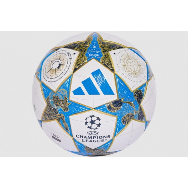 Приготовьтесь к 71-му выпуску главного клубного турнира Европы с футбольным мячом Adidas Finale 26 League JP1548 в цвете «Белый/Темно-синий/Pantone/Золотой». Этот мяч, сертифицированный по стандарту FIFA Quality, гарантирует идеальную окружность, вес, отскок и водонепроницаемость.