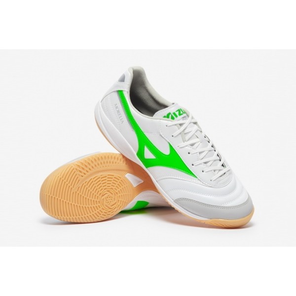 Станьте непревзойденным игроком на площадке в кроссовках Mizuno Morelia Sala Pro IN Q1GA2513-37 в цвете белый/неоново-зеленый/галактико-серебристый. Это новейшая версия классических футзальных кроссовок Morelia, которые отличаются гибкостью и легкостью.