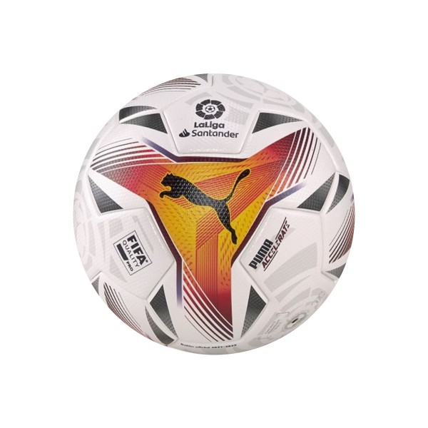 Футбольный мяч Puma LaLiga 1 Accelerate FIFA Pro 083645-01 с уникальной конструкцией из восьми панелей с трехмерной текстурированной поверхностью 1,2 мм для улучшения аэродинамики имеет сертификат качества FIFA, что гарантирует высокую производительность.