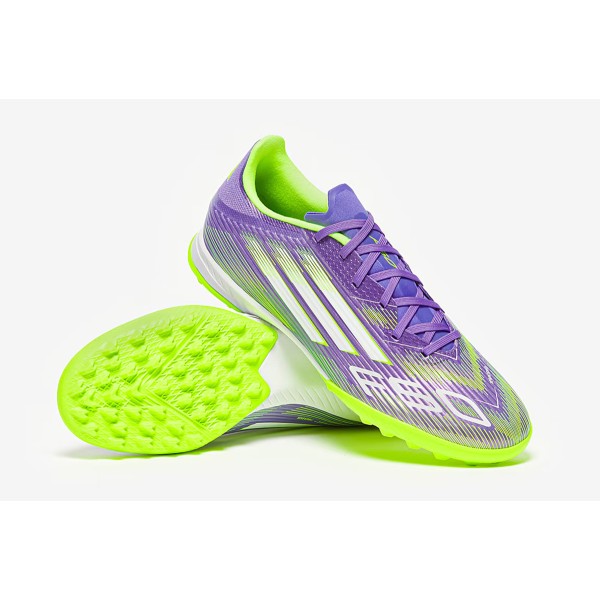 Переосмисліть швидкість у футбольному взутті Adidas F50 League TF JH7724 кольору Purple Rush/Ftwr White/Lucid Lemon.