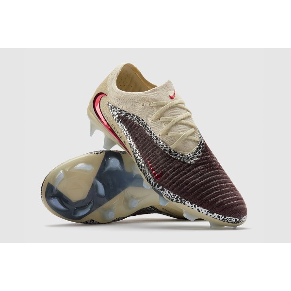 Дика точність. Воїнський дух. Грайте за межі можливого у футбольних бутсах Nike Phantom 6 Elite NU3 FG IO8444-661 кольорів Burgundy Crush/Univ Red/Fossil. Частина колекції Nike United Ch.3, яку носять такі зірки, як Софія Вілсон та Дейна Кастелланос, ця кольорова гама з анімалістичним принтом віддає шану інстинктам переможців матчів та змагальному характеру найкращих гравців.